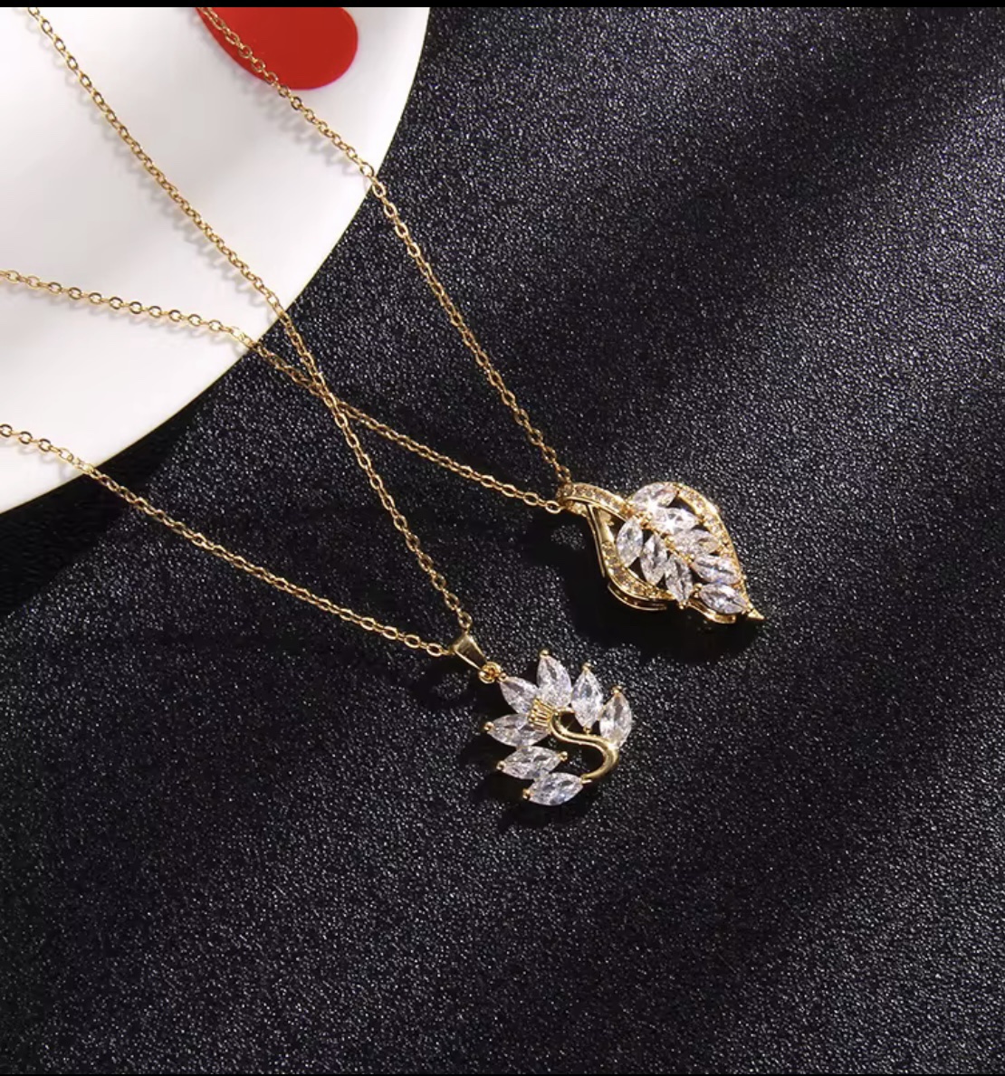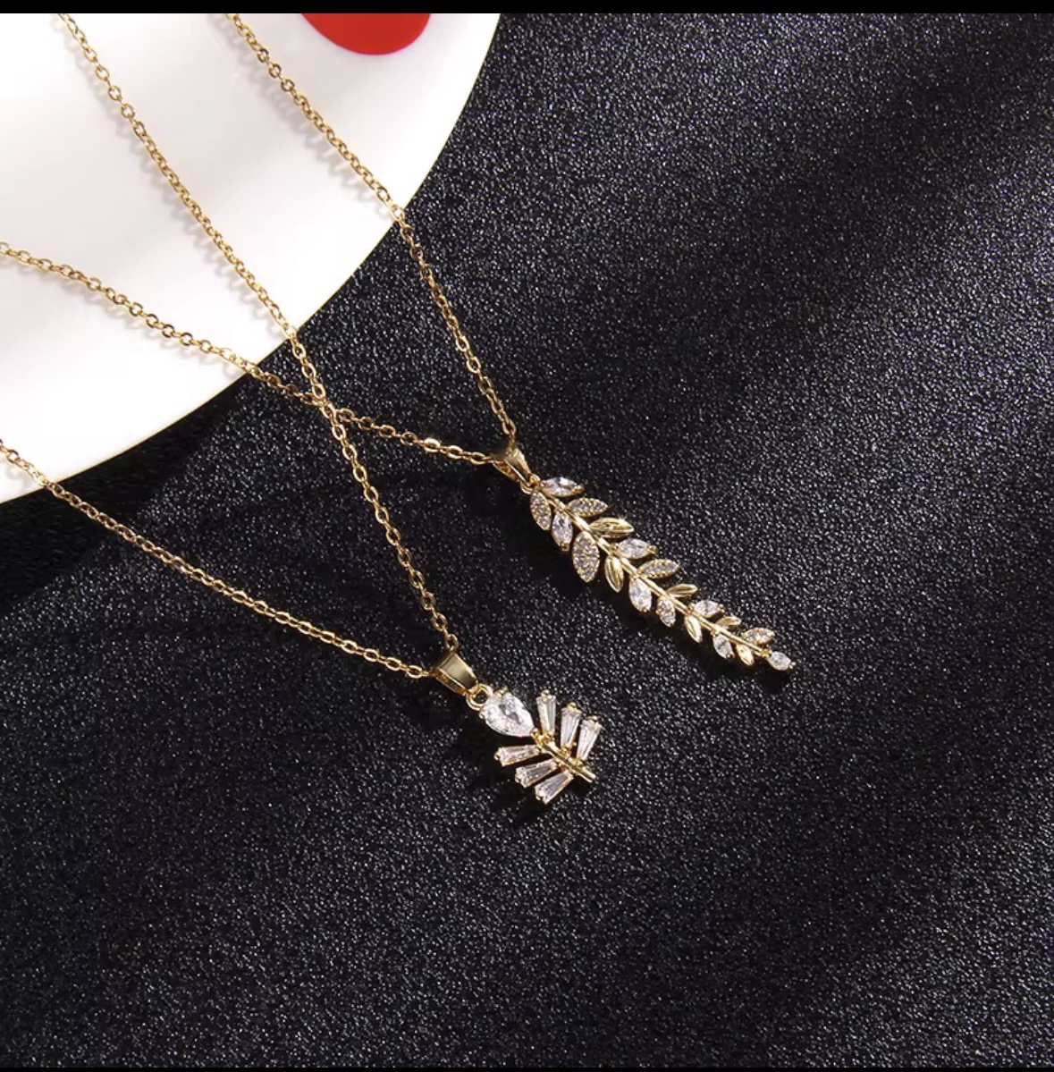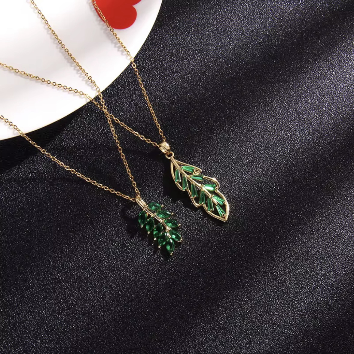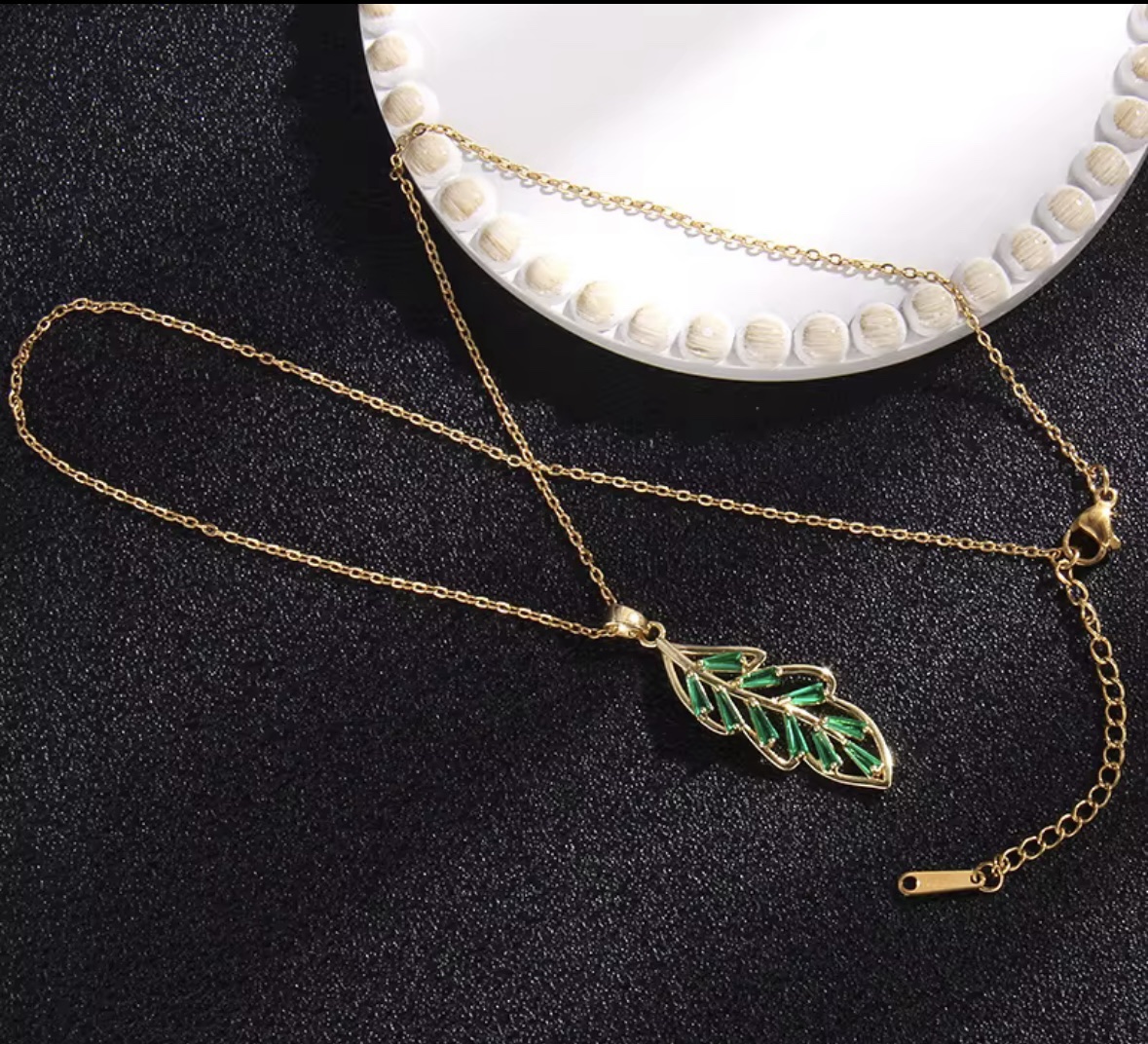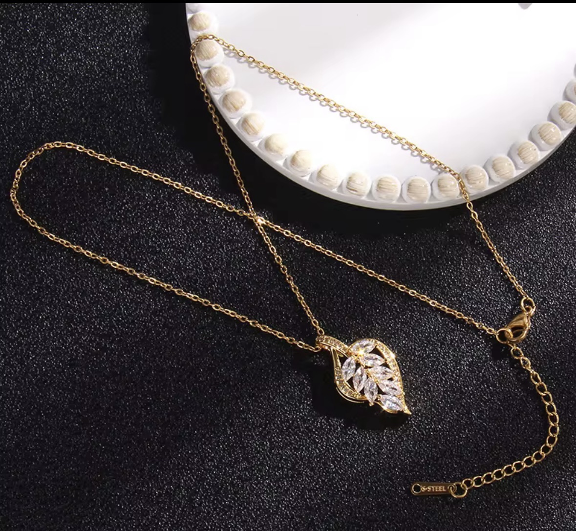 Collier doré en acier inoxydable avec pendentif à feuilles en pierre de zircon cubique