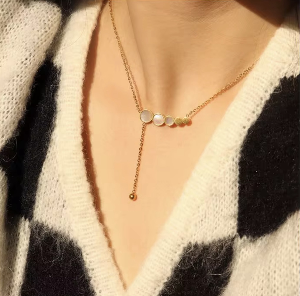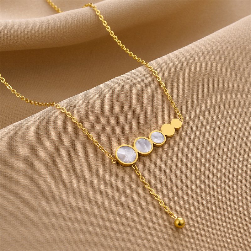 Collier doré en acier inoxydable avec pendentif en coquillage blanc à cercles multiples