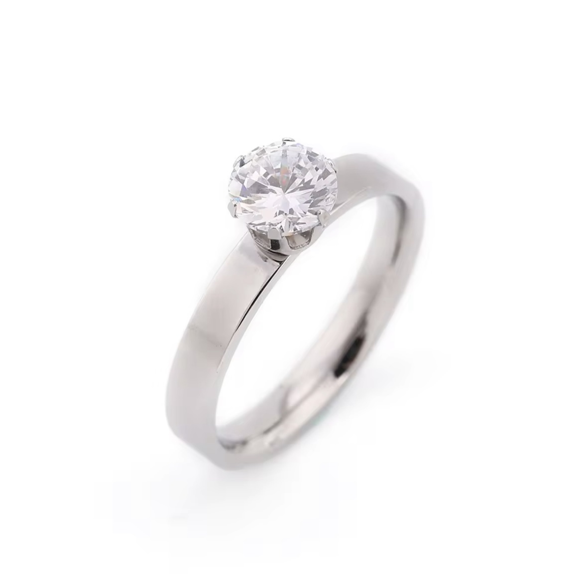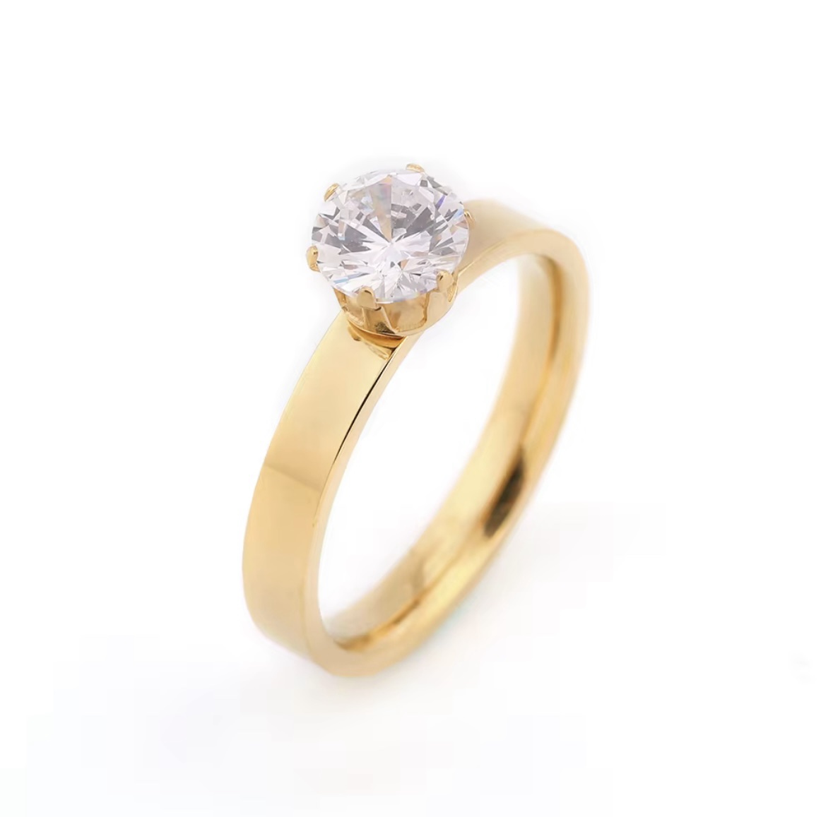 Bague dorée en acier inoxydable avec diamant en zirconium