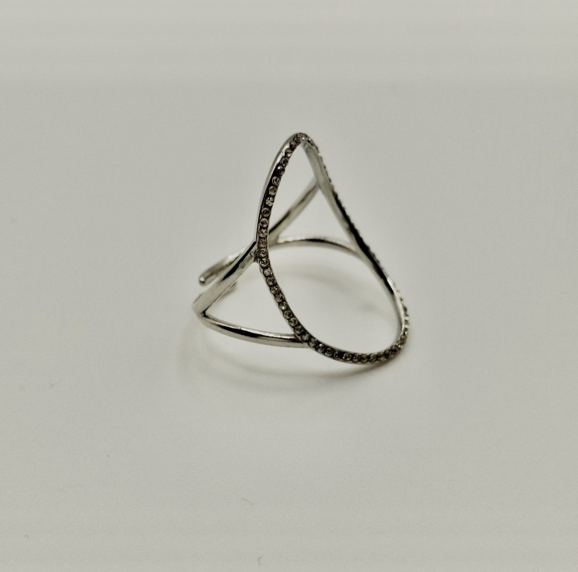 bague argentée en acier inoxydable ovale géométrique ouverte , avec des strass en zircon