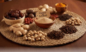 Ingrédient(s) Clé(s) Bienfait(s) pour la Libido Gingembre C’est l’un des aphrodisiaques naturels les plus célèbres. Il est réputé pour son effet vasodilatateur, qui améliore la circulation sanguine, y compris vers les organes sexuels, favorisant ainsi l’excitation et la performance. Clou de girofle Puissant tonique. On lui prête la capacité d’augmenter l’afflux sanguin vers les organes génitaux et d’avoir un effet positif sur la production de testostérone (bien que cela nécessite plus de preuves scientifiques). Petit Cola / Noix de Cola Riche en caféine et en stimulants, il agit comme un tonifiant général qui combat la fatigue et augmente l’énergie, ce qui peut se traduire par une amélioration du désir sexuel et de l’endurance. Poivre d’Afrique Il peut contenir de la capsaïcine (comme le piment), qui stimule les terminaisons nerveuses et augmente le métabolisme, contribuant à une sensation de chaleur et d’énergie. Souchet Traditionnellement considéré comme un aphrodisiaque dans certaines cultures, il peut également être une source d’énergie et de nutriments bénéfiques.